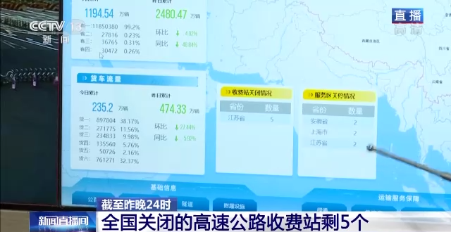 截至5月1日24时,全国关闭高速公路收费站5个,关停高速公路服务区6个。全网共设置12000多个公路防疫检查点。