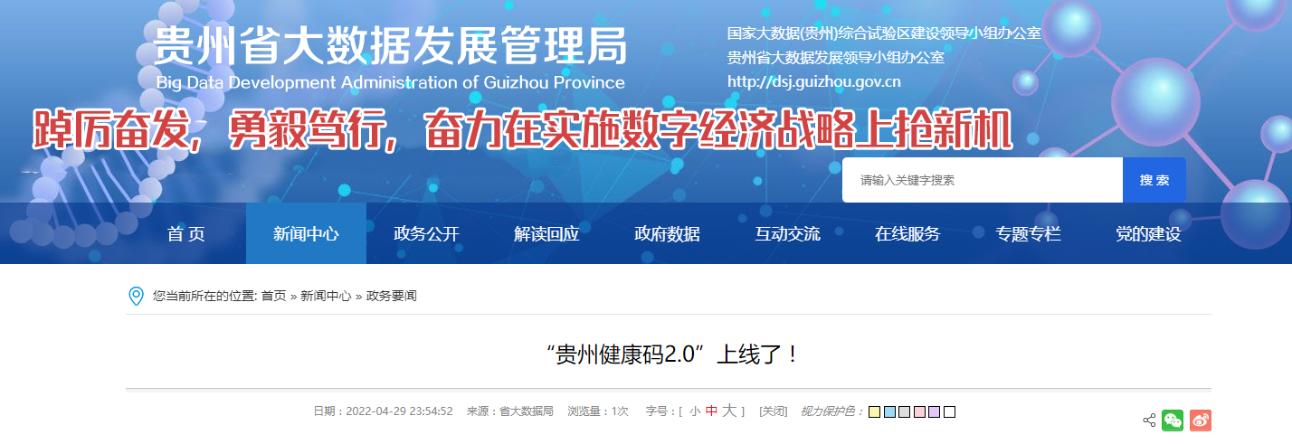 4月29日,“贵州健康码2.0”上线了!近期,国内疫情点多、面广、频发,我省多个市(州)相继发生输入性疫情,外防输入压力巨大,入黔关口防疫查验管控任务繁重。为深入贯彻党中央、国务院决策部署,落实“外防输入,内防反弹”总策略和“动态清零”总方针,根据省应对新冠肺炎疫情防控领导小组关于运用大数据手段做好常态化疫情防控的相关要求,省大数据局主要负责同志带领技术团队集智攻关,打造了贵州健康码2.0版本,实现外省返黔人员风险精准识别、省内人员流动精准管控,为省内人口、经济正常流动提供安全保障。
