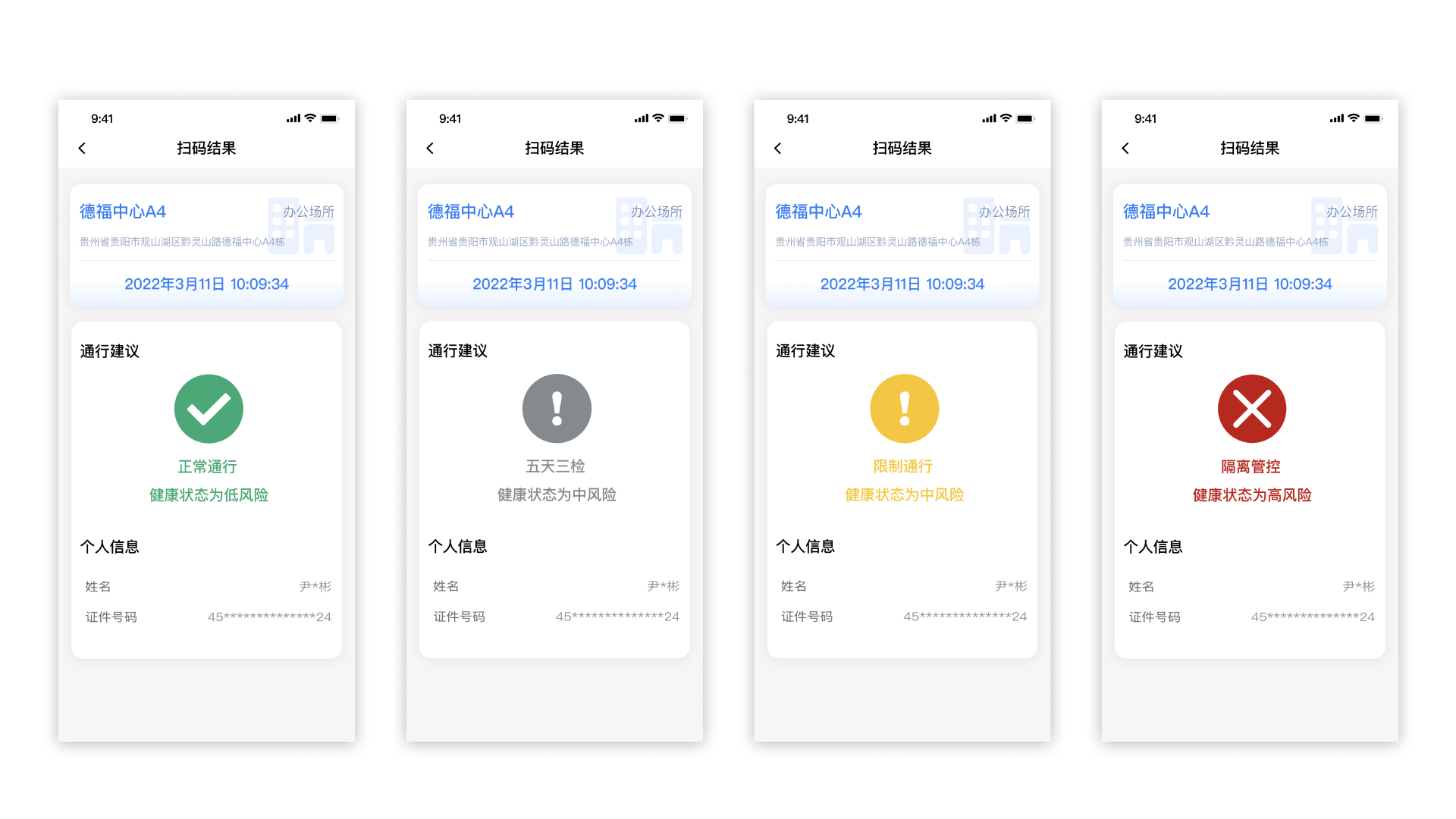 贵州健康码2.0升级全新界面。完成从“亮卡”到“亮码”的转变,按“一人一码、人证一致、动态更新、全省通用”的原则,亮码界面将在完成实人认证后升级为包含个人身份信息的二维码和代表健康状态的四色健康码界面。群众可使用首页的“个人码”,供机场、铁路车站、客运站等重点场所的终端核验设备综合研判群众健康状态,用于信息登记,精准识别风险人群。