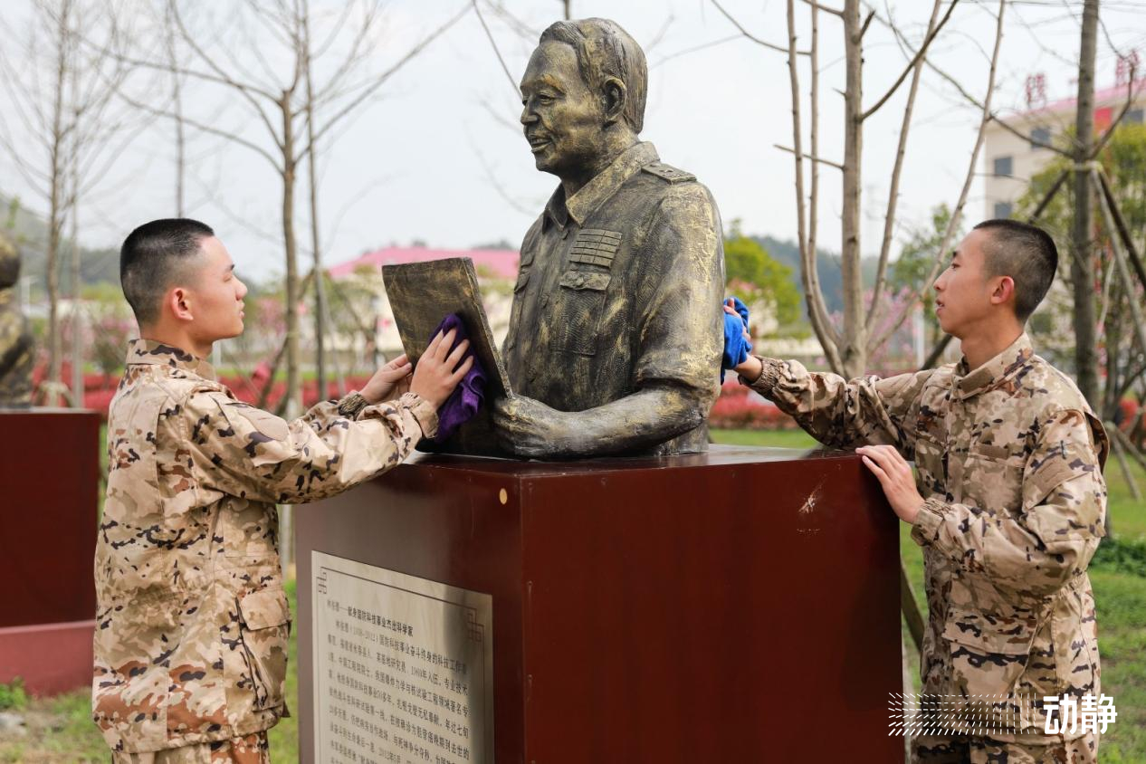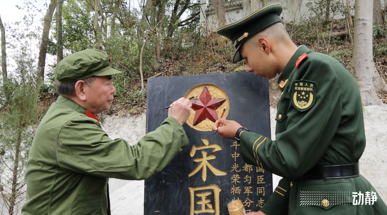 在平塘县龙脑坡烈士陵园,参战退役老兵李明尧向武警黔南支队的官兵们深情讲述自己保家卫国的战斗故事,动人之处,迎来阵阵掌声。随后,武警官兵还对烈士墓进行祭扫,大家细致擦拭墓碑灰尘,用金色油漆为墓碑“描红”,告慰先烈,寄托哀思。