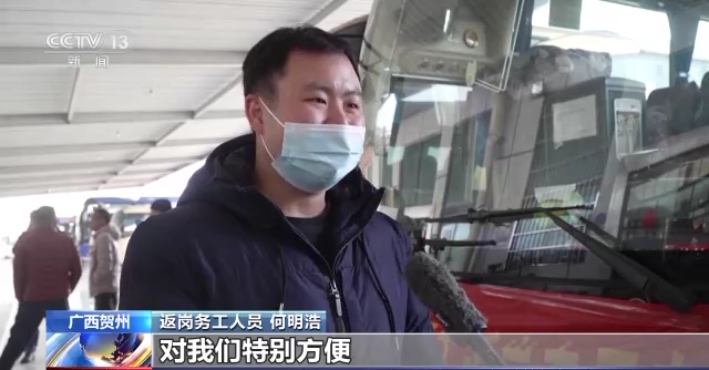返岗务工人员 何明浩:对我们特别方便,出家门就可以直接上车了,感觉非常好、非常畅通。