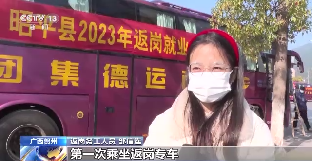 返岗务工人员 邹信连:第一次乘坐返岗专车,新的一年,我会通过自己的努力把日子过得越来越好!