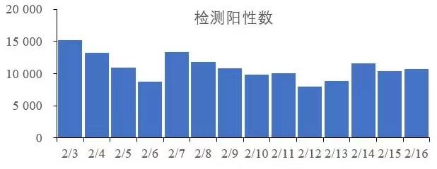 根据中国疾病预防控制中心2月以来发布的6次《全国新型冠状病毒感染疫情情况》,1月30日核酸检测阳性数2.4万例,2月6日核酸检测阳性数为0.9万例,2月13日为8847例,2月16日为10720例。虽然核酸检测阳性数及阳性率已大幅下降,但是感染者人数仍然存在。2月以来,31个省(区、市)及新疆生产建设兵团报告的核酸检测阳性数日新增仍在5000例以上。