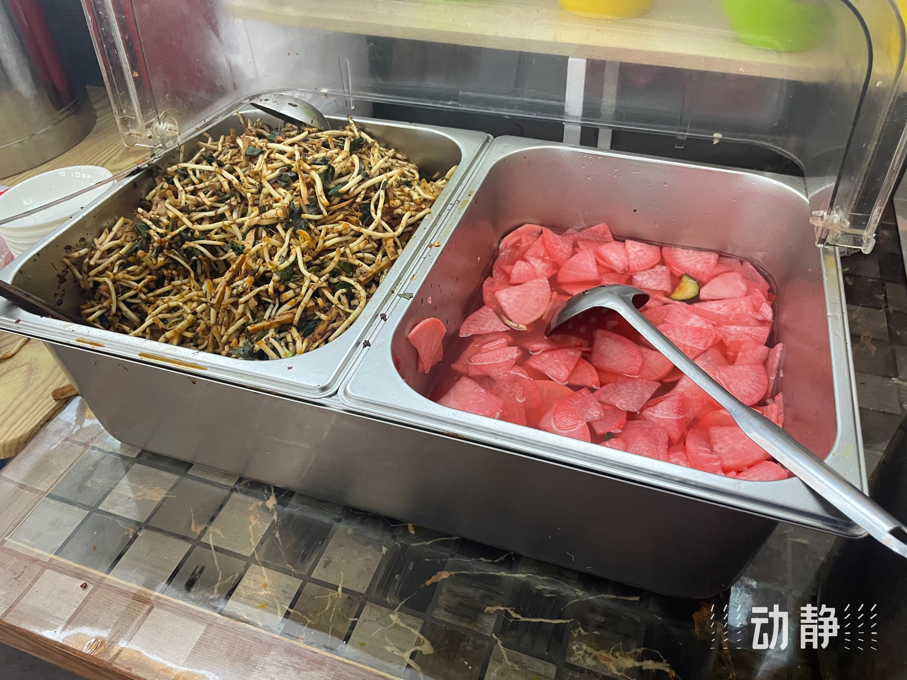 如果吃干拌面时觉得油腻或者口干,店家还为客人提供了免费的凉菜及南瓜汤。要是不想吃拌面,店家也提供盖饭或者特色小炒。