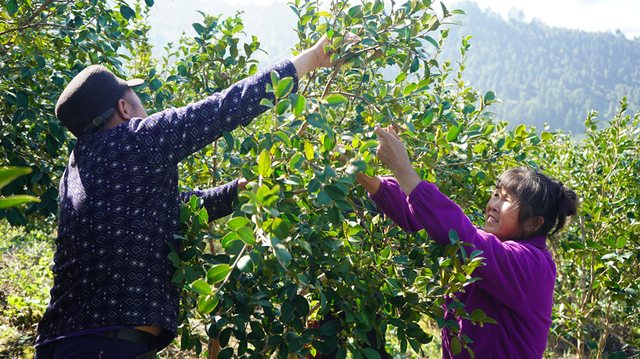 近年来,贵州省岑巩县龙田镇把发展油茶产业当作农民增收致富的产业来抓,加大统筹协调工作力度,全面推动油茶产业高质量发展,积极做好采收工作,确保油茶籽颗粒归仓,实现青山变“金山”。
