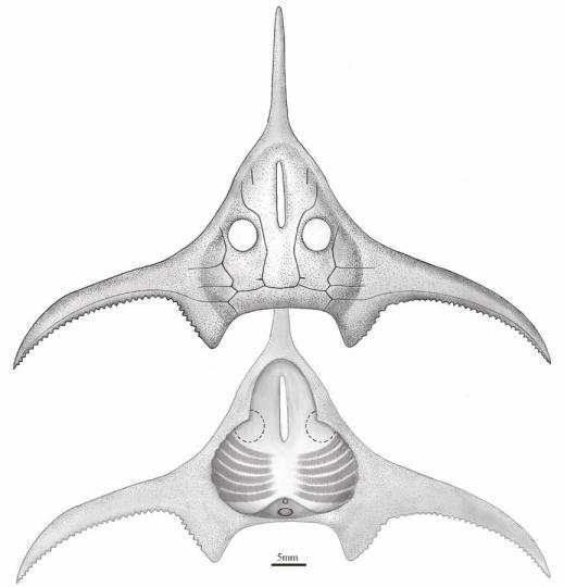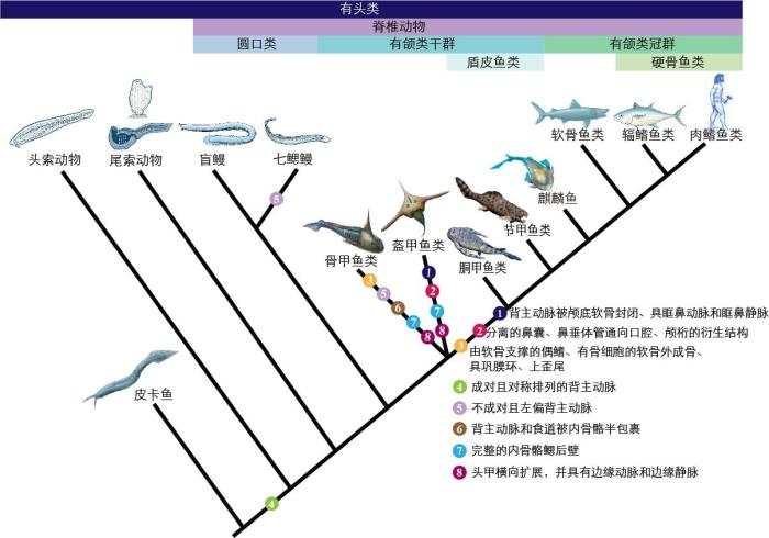过去由于保存和化石稀缺的局限,学界对盔甲鱼类腹面以及内部解剖特征知之甚少,而玉海翼角鱼新标本清楚的保存了腹面的关键形态学信息,是第一个明确揭示食道和背大动脉位置关系的关键化石。同时,玉海翼角鱼化石新标本研究还将盔甲鱼类的内部解剖与骨甲鱼类、现生的无颌类七鳃鳗以及有颌类软骨鱼类进行对比,重新梳理了七鳃鳗、盔甲鱼类、骨甲鱼类与有颌类的共近裔性状。