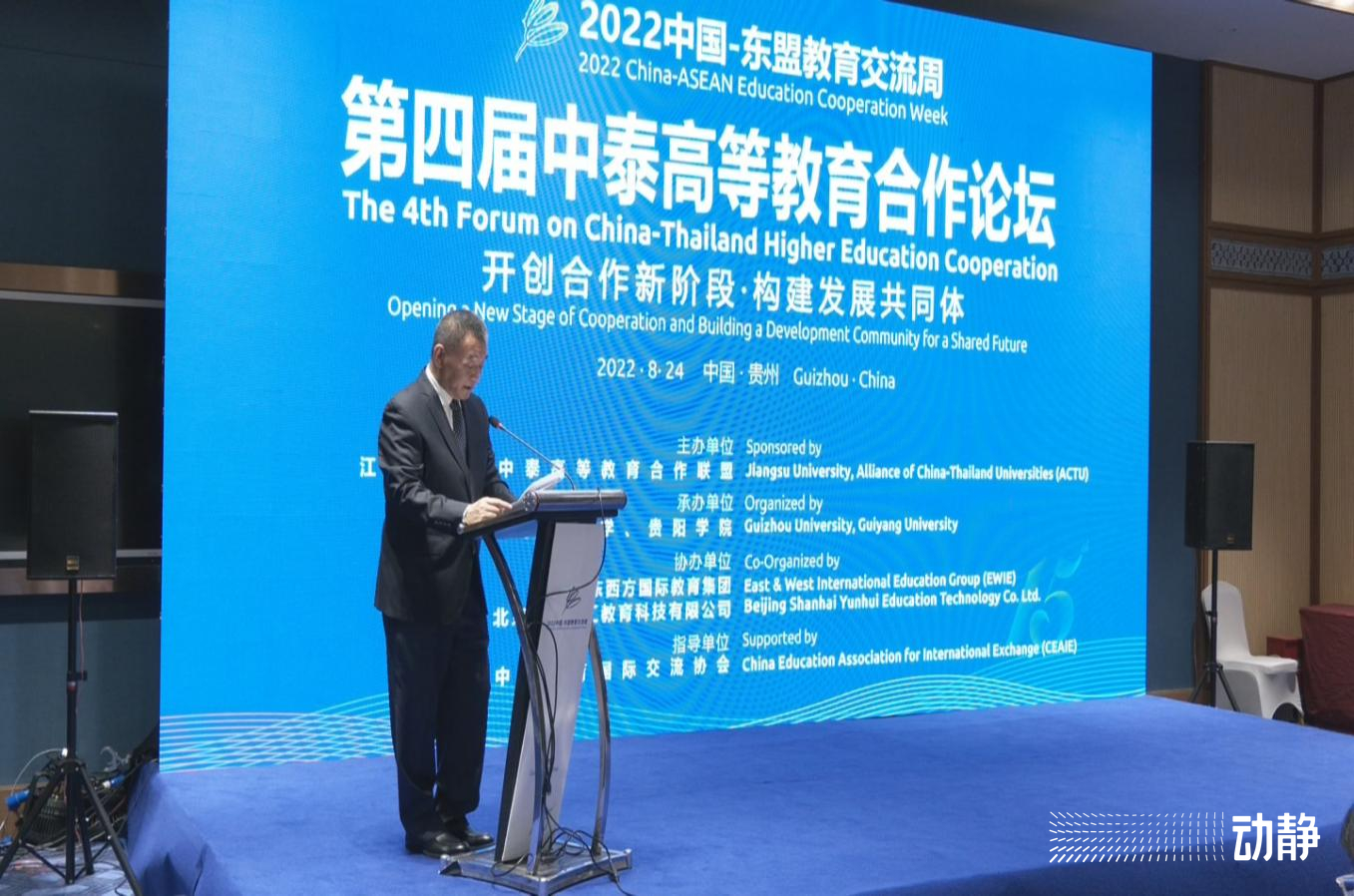 8月24日,在2022中国—东盟教育交流周期间,由江苏大学、贵州大学、中泰高等教育合作联盟和贵阳学院联合举办的第四届中泰高等教育合作论坛在贵州贵安新区举行。论坛以“开创合作新阶段·创新发展共同体”为主题,现场邀请了中泰两国高等教育界领导以及相关领域的专家学者以及近百所大学的约150多名代表通过线上线下的方式,共同研讨科研合作和人才联合培养,进行经验分享。