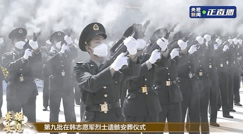 礼兵护送志愿军烈士棺椁