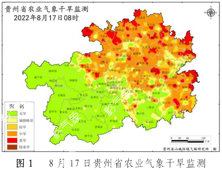截至8月17日,遵义、铜仁、黔东南中部以北以东、毕节东部、贵阳北部和黔南北部出现轻至中级干旱,个别乡镇重旱。