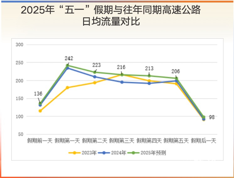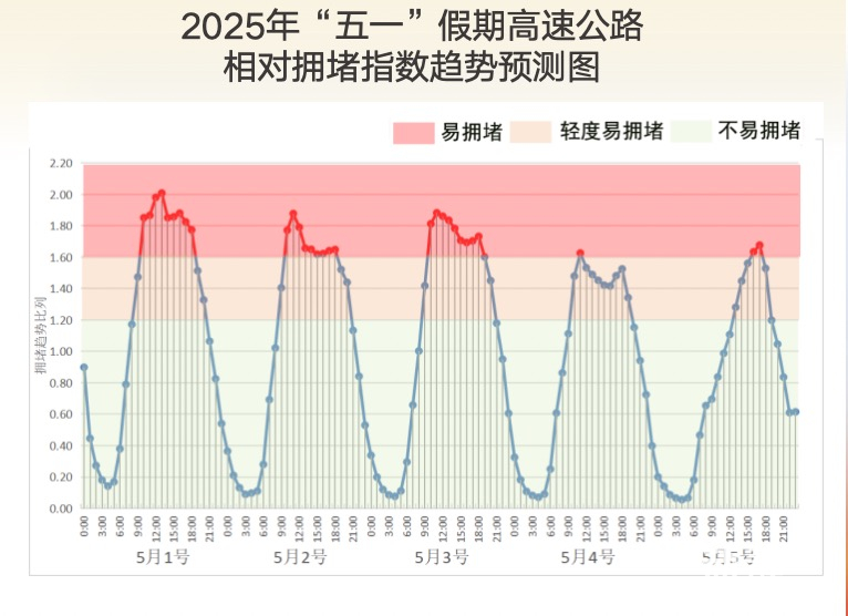 记者从贵州交通信息与应急指挥中心获悉,今年“五一”假期,贵州高速公路出口流量预计将达1100万辆次,日均约220万辆次,同比增长6.69%,预计为历年“五一”假期新高。今年“五一”首日为出行高峰,单日流量预计可达242万辆次。