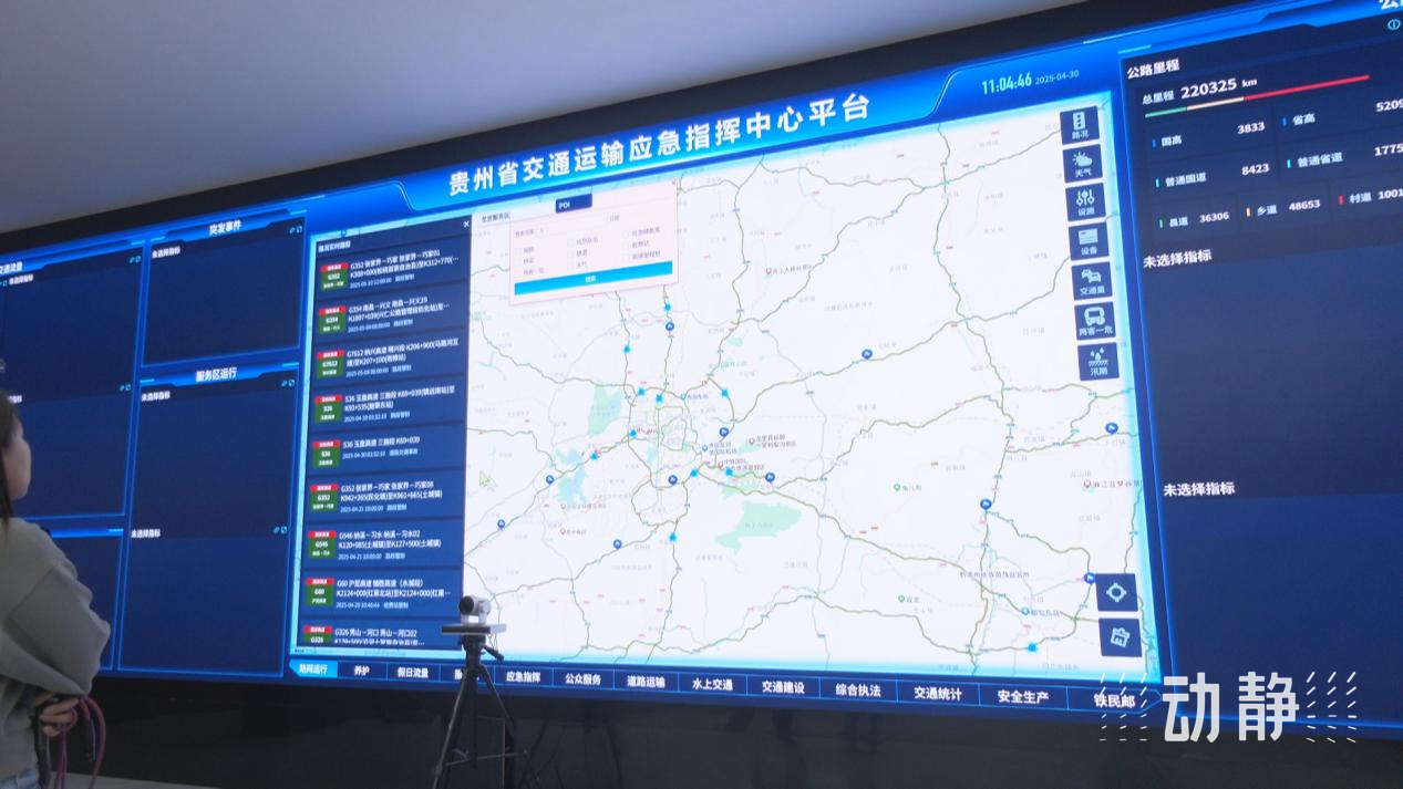 在贵州交通信息与应急指挥中心,工作人员通过轻点鼠标,就能在大屏上切换全省652个收费站和365个服务区的实时画面。为有效应对复杂交通状况,指挥中心联合公安、交警、气象、应急等部门,以及高德、百度等科技公司,提前发布拥堵预判,并制定了完善的突发事件应对方案。