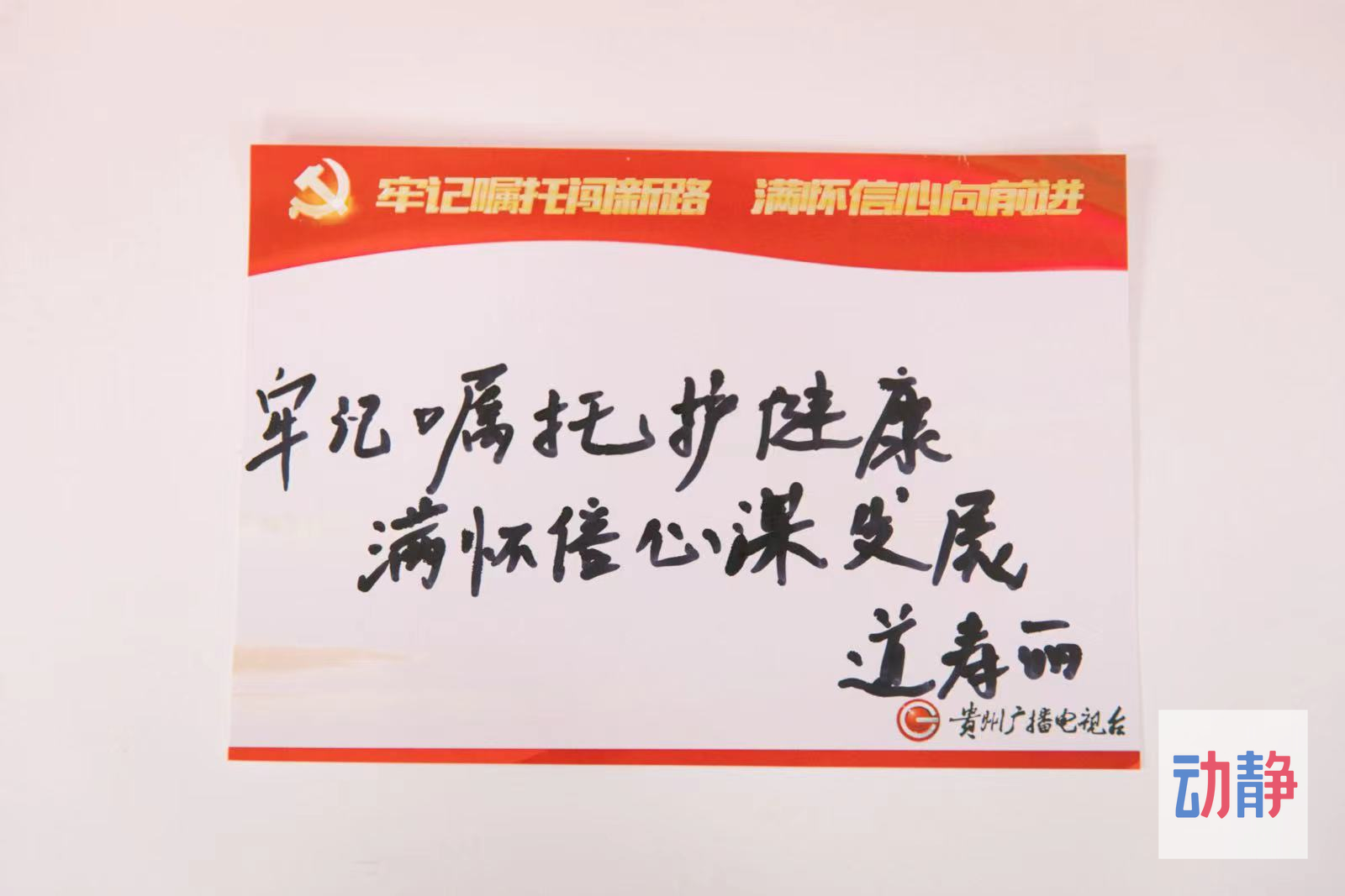 省党代会代表、六盘水市妇幼保健院妇一科主任道寿丽写下的话是:牢记嘱托护健康,满怀信心谋发展。
