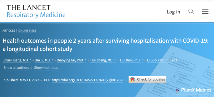5月12日,《柳叶刀·呼吸病学》上发表了一篇武汉新冠肺炎出院两年随访结果研究,该研究由中日友好医院曹彬教授和北京协和医学院王健伟教授团队共同完成,这也是迄今为止针对新冠患者随访时间最长的一项研究。