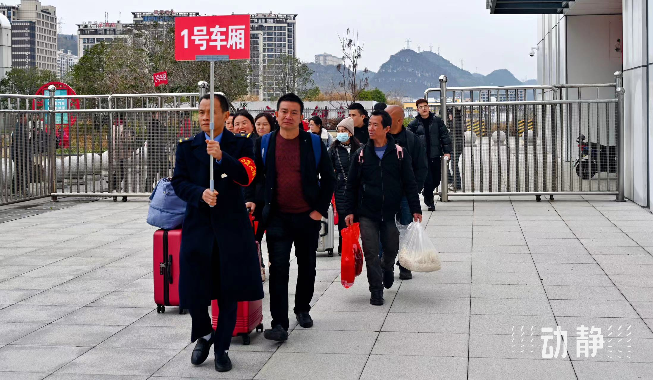 据统计,自2月15日桐梓东站开出贵州今年首趟务工专列D1831次,两周内,贵阳、安顺、遵义、都匀、榕江、从江等地相继开出务工专列,总计开出18趟,助力1.1万余名黔籍务工人员前往广州、杭州、宁波等地返岗就业。