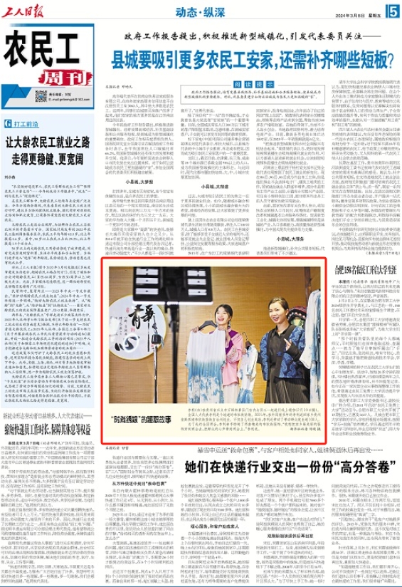 今天(3月8日),《工人日报》刊发新闻《“时尚绣娘”的履职故事》。