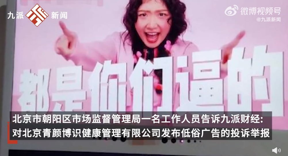 北京市朝阳区市场监督管理局一名工作人员告诉记者,“针对北京青颜博识健康管理有限公司发布低俗广告、虚假宣传的投诉举报,我们依据市场监督管理行政处罚相关规定,经过综合研判决定立案调查,目前正在收集证据材料、约谈品牌方,将在90天内结案。”