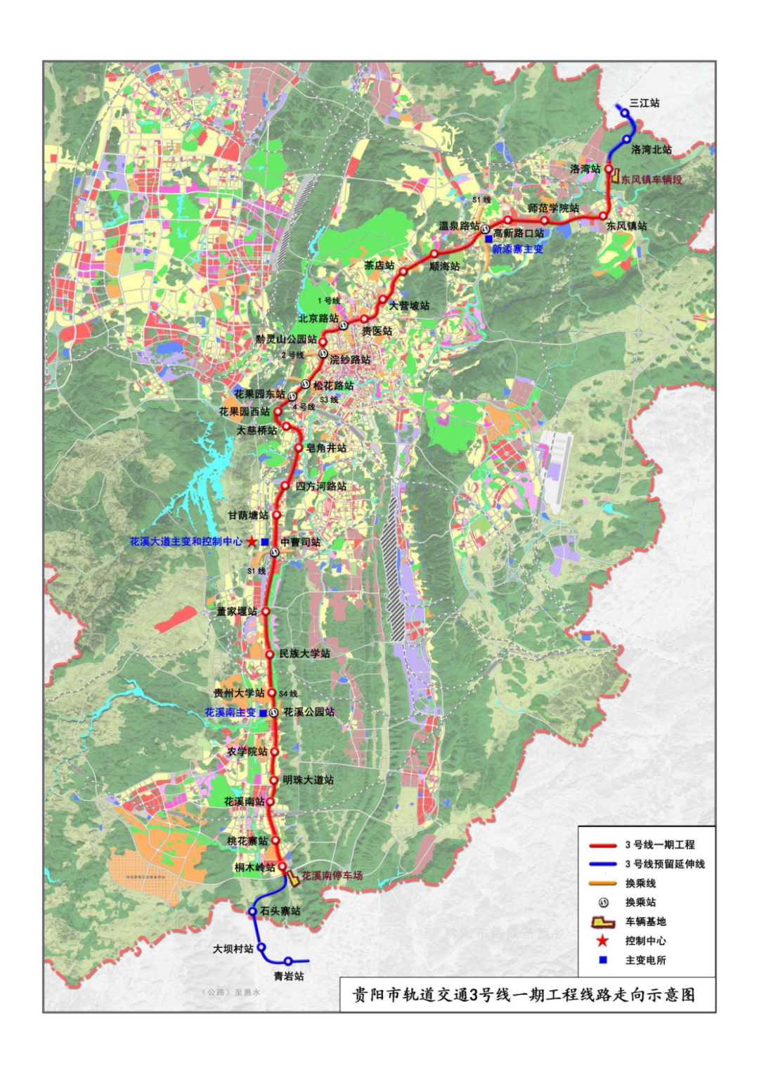贵阳轨道交通3号线一期工程全长43.03千米,起于花溪区桐木岭,经过经开区、南明区、云岩区,止于乌当区洛湾,共计29座车站和28个区间。项目总投资322.31亿元,建设工期为5年。