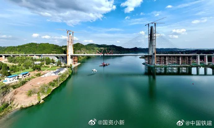 我国首座双线高速铁路高低塔混合梁斜拉桥合龙