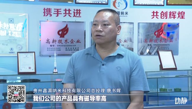 贵州鑫湄纳米科技有限公司总经理唐书辉继续说,公司的产品具有磁导率高,还有产品形状多,响应速度快,今年到年底的订单量都是满的。今年我们计划能够突破完成2500万元左右。