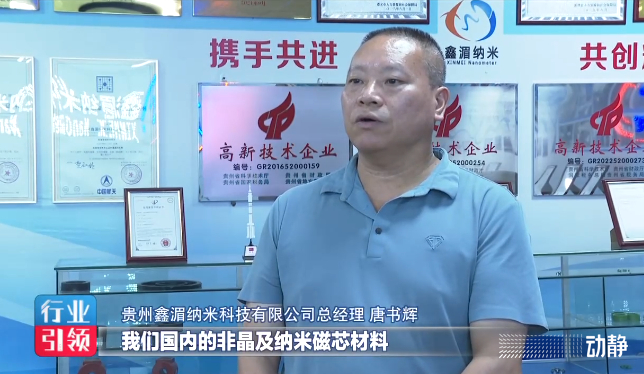 贵州鑫湄纳米科技有限公司总经理唐书辉介绍,他们公司生产的主要产品是非晶及纳米磁芯材料的元器件,主要针对军用和民用这些产业。军用是航空、航天、航海、舰船;民用就是空调、汽车以及轨道交通、包括家用电器等。它是任何高科技行业绕不开的关键性零部件。