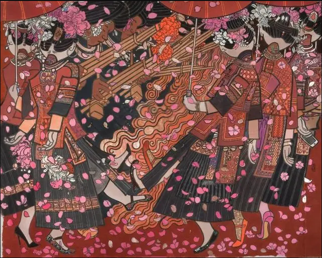 《跳花场上》刘金贵 水墨纸本(贵州土纸)设色 204×257cm 2019年