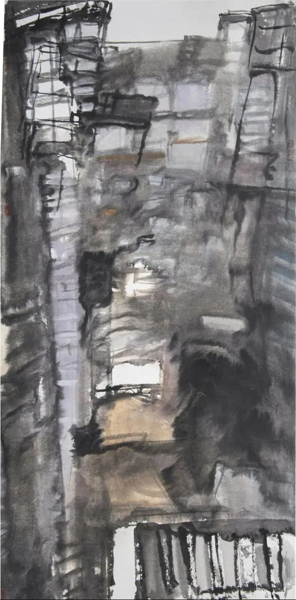 《城市镜像》 潘闻丞 水墨纸本(贵州土纸)设色 69×140cm 2023年