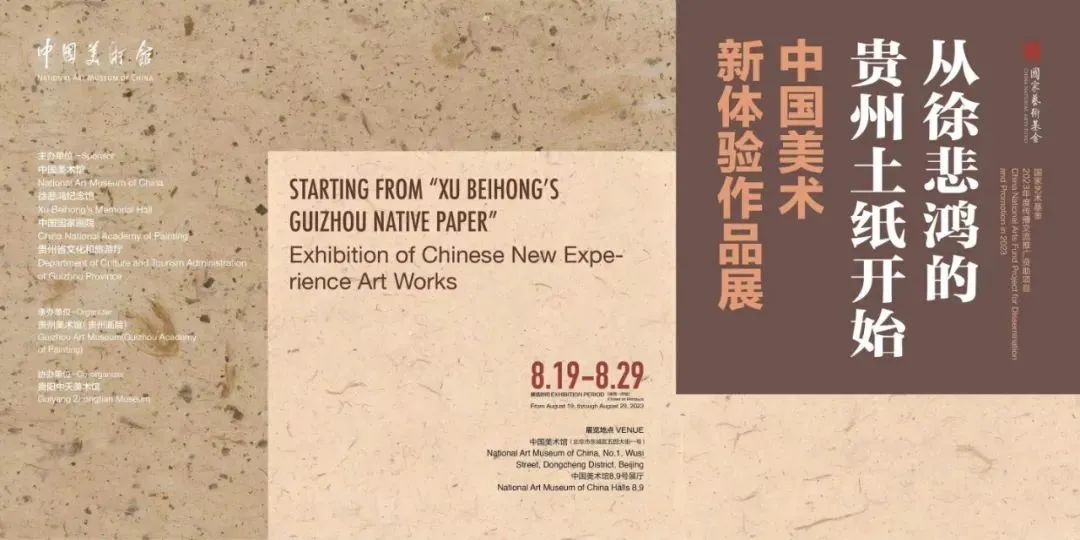 由中国美术馆、徐悲鸿纪念馆、中国国家画院和贵州省文化和旅游厅联合主办的“从‘徐悲鸿的贵州土纸’开始——中国美术新体验作品展”于今天(8月20日)上午10:00在中国美术馆开幕。本次展览是国家艺术基金2023年度传播交流推广项目。