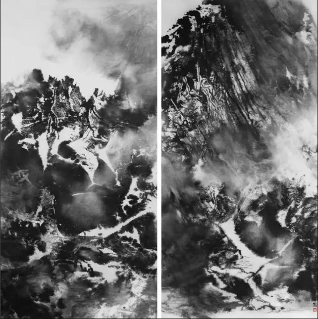 《山迹云象N89》谌宏微 水墨纸本(贵州土纸)设色 67×140cm×2 2019年