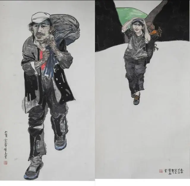 《走出丫口》贺昆 水墨纸本(贵州土纸)设色 69×137cm×2 2023年