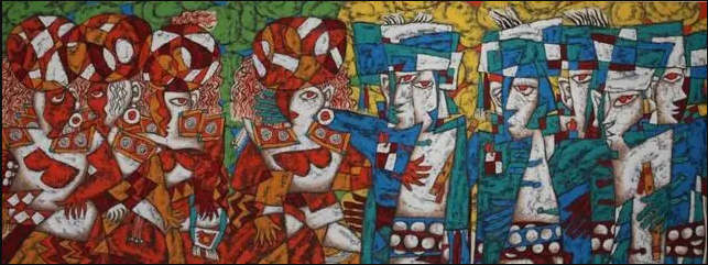 《对歌场》董克俊 水墨纸本(贵州土纸)设色 280×90cm 2013年