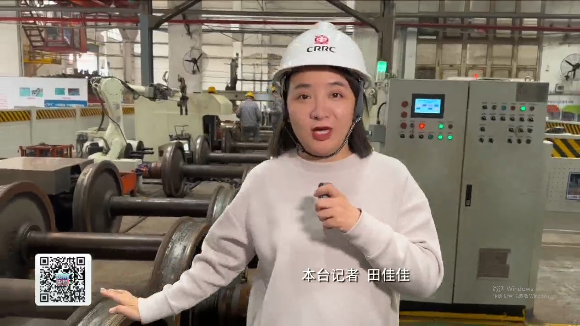 贵州台记者田佳佳说:“铁路货车的底盘加上车轮和车轴部分,就被称为转向架,在这里转向架被自动分解成283个零件,并且运送到不同的工位上去进行检修,过去这个车间每天只能够检修50台转向架,通过装备智能化升级改造以后,现在这里可以检测生产70台。”