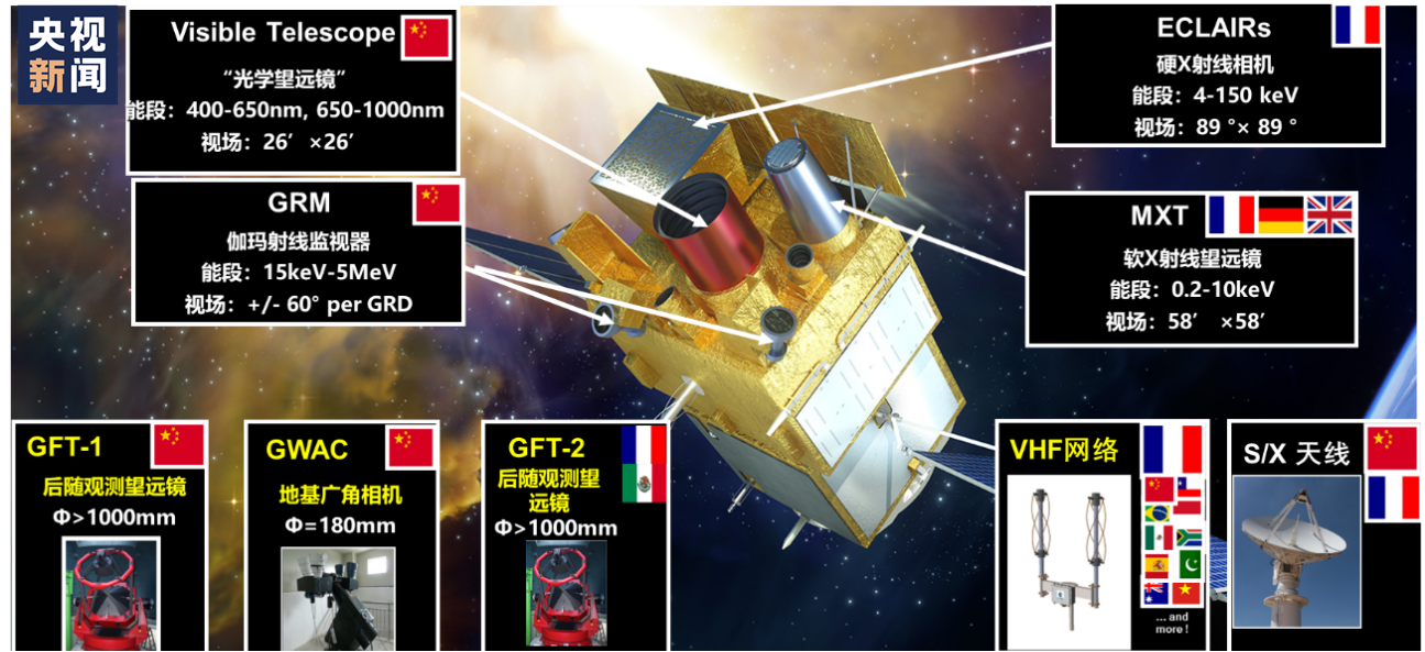 中法天文卫星集成了中法双方研制的四个有效载荷仪器,于今年6月22日顺利发射升空,是中法两国在空间科学领域开展的重要国际合作项目,也是目前全球对伽马射线暴开展多波段综合观测能力最强的卫星。该卫星预计在今年8月份进入科学任务观测测试。