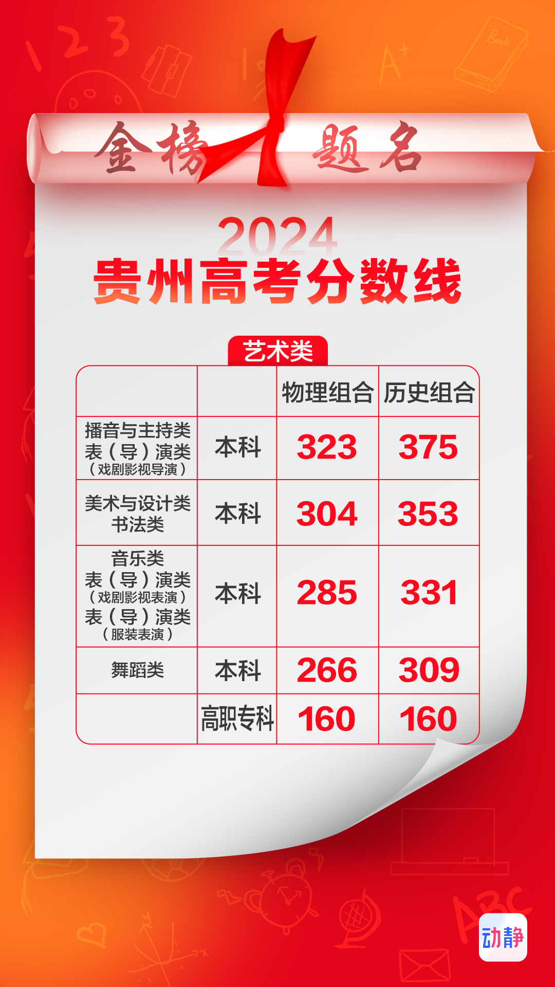 播音与主持类、表(导)演类(戏剧影视导演)本科录取控制分数线:375分;