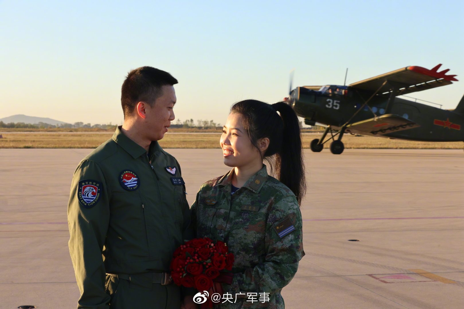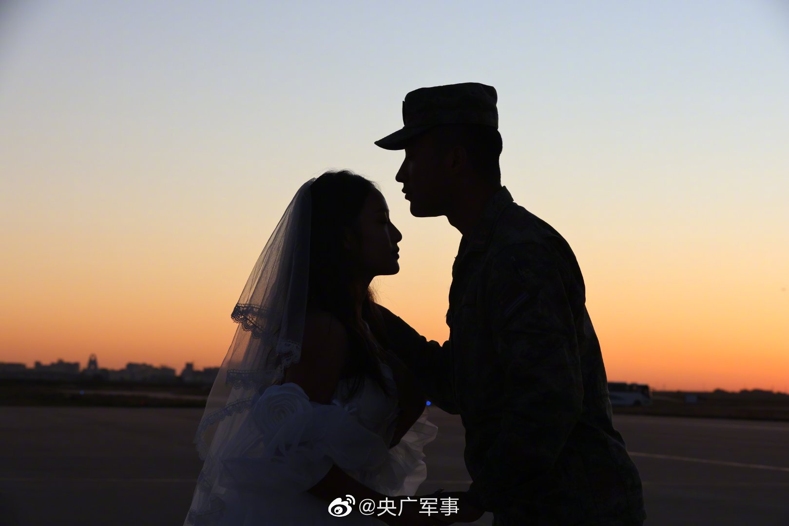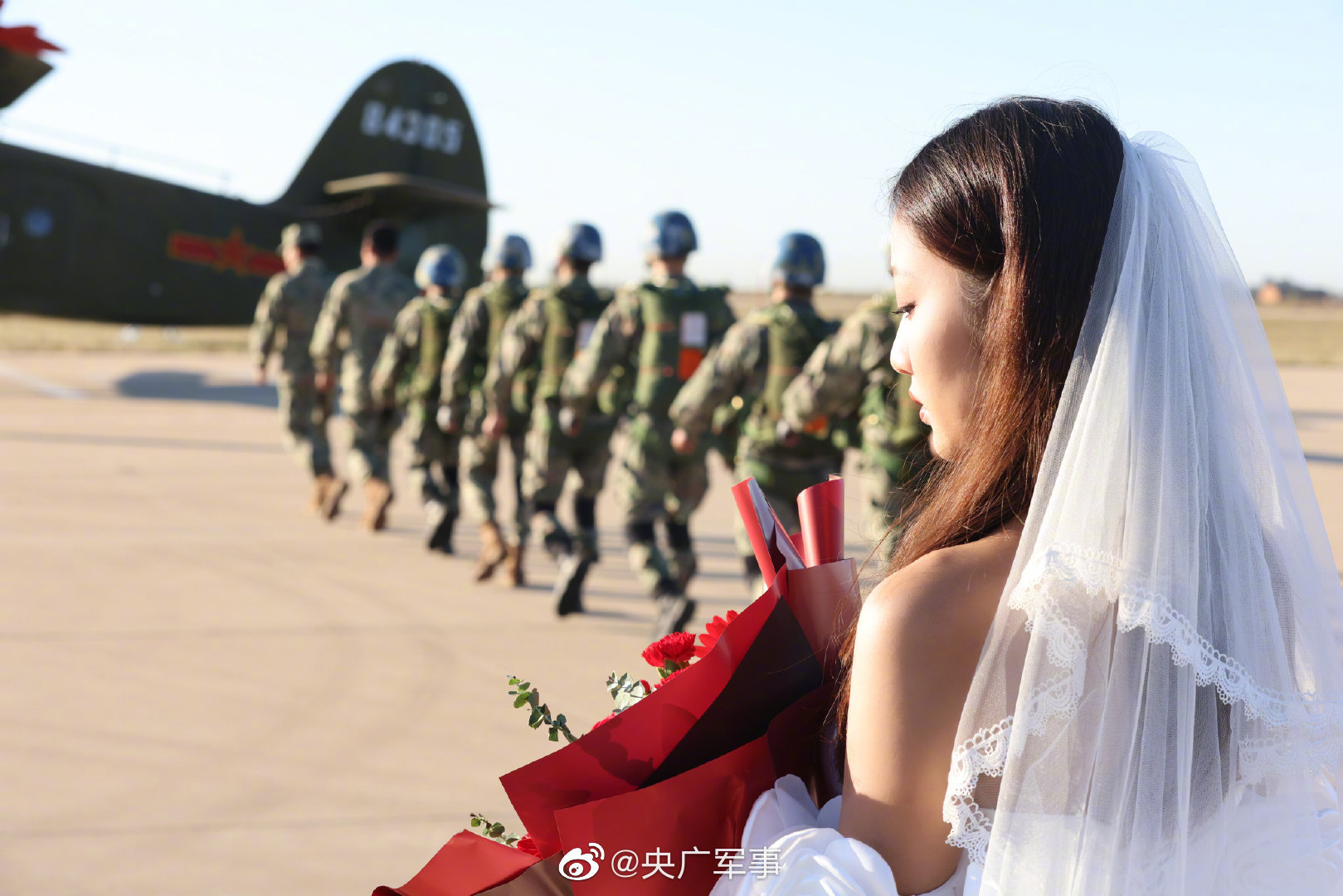 “我的意中人是个海军航空兵,有一天他会脚踩七彩祥云来娶我!”新娘手捧鲜花,期盼心中英雄;新郎身背降落伞,从千米高空降落到新娘身边。小编已经被这场特别的集体婚礼甜哭了!一定要幸福。