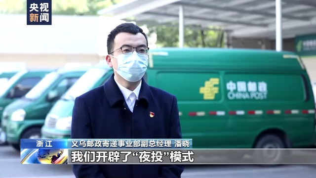 义乌邮政寄递事业部副总经理潘晓:针对派送的最后一公里,我们开辟了“夜投”模式,延长派件时长4~5小时,希望最终达到让邮件可以安全快速到大家手中的目的。