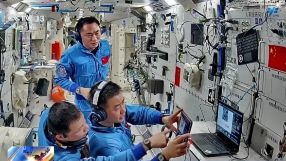 完成医疗救护在轨训练及全系统压力应急演练,持续开展站内环境监测、设备检查维护、物资整理等工作。