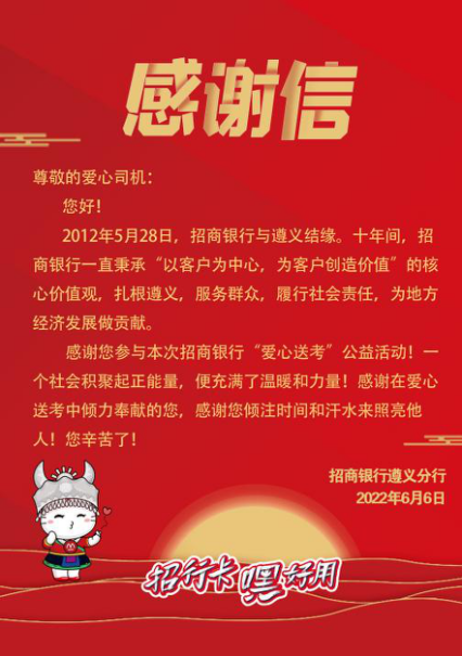 十年磨一剑,一朝试锋芒。6月7日,一年一度的全国高考拉开帷幕。在高考之际,招商银行遵义分行发起了“助力高考,为梦护航”公益活动。