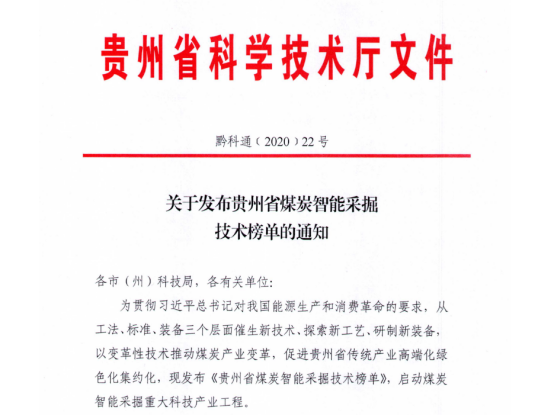 这道考题,来自2020年省科技厅发布的贵州省煤炭智能采掘技术榜单。