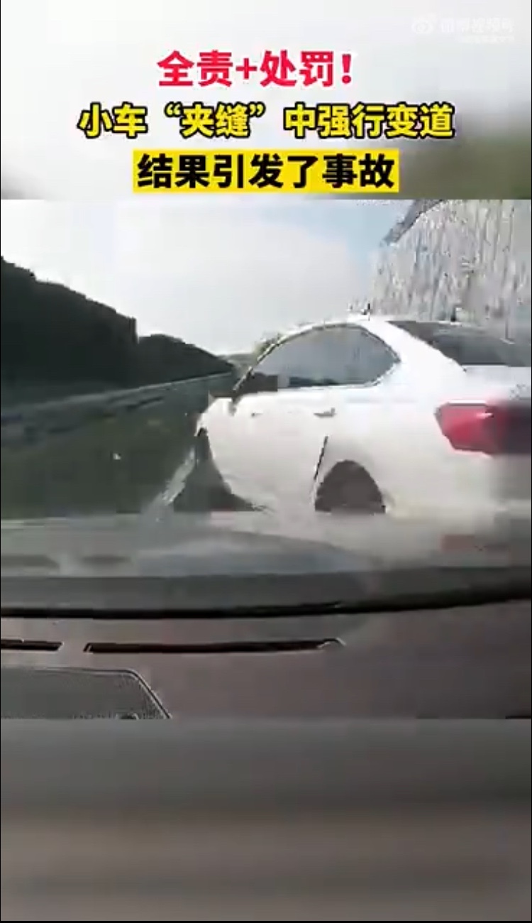 5月14日,沪昆高速江西境内。一辆小货车原本在慢车道行驶,行驶中为了超越同车道前方一辆大货车,不顾左侧车道有一辆半挂车正在超车,从前后不足10米的“夹缝”中强行向左变道,结果被半挂车撞到尾部,随即失控侧翻。幸运的是未造成人员伤亡。交警认定,小货车在不具备变道条件下违法变道,影响其他车辆正常通行,承担事故全部责任。