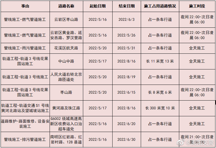 提示!贵阳市枣山路、中山中路等多路段近期临时占用道路施工