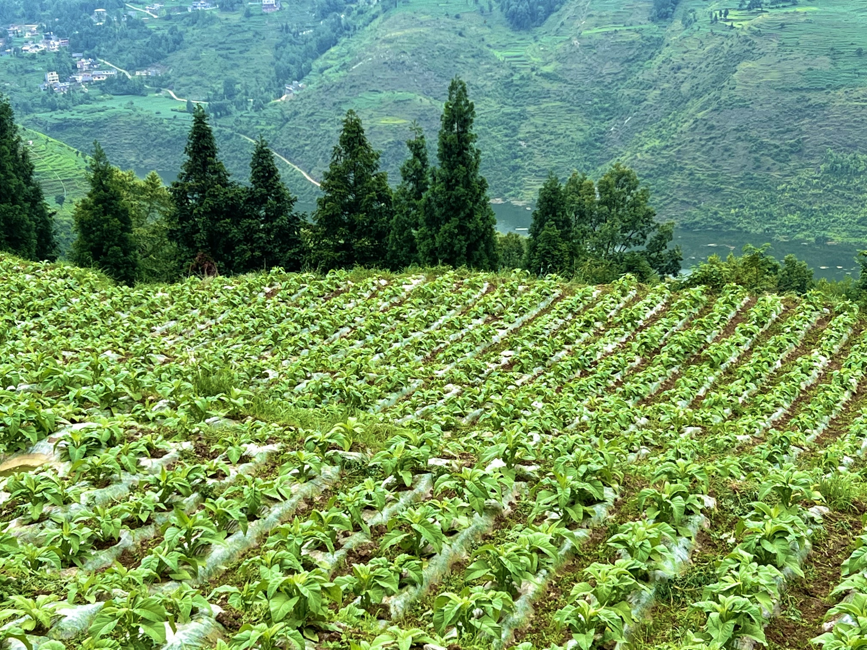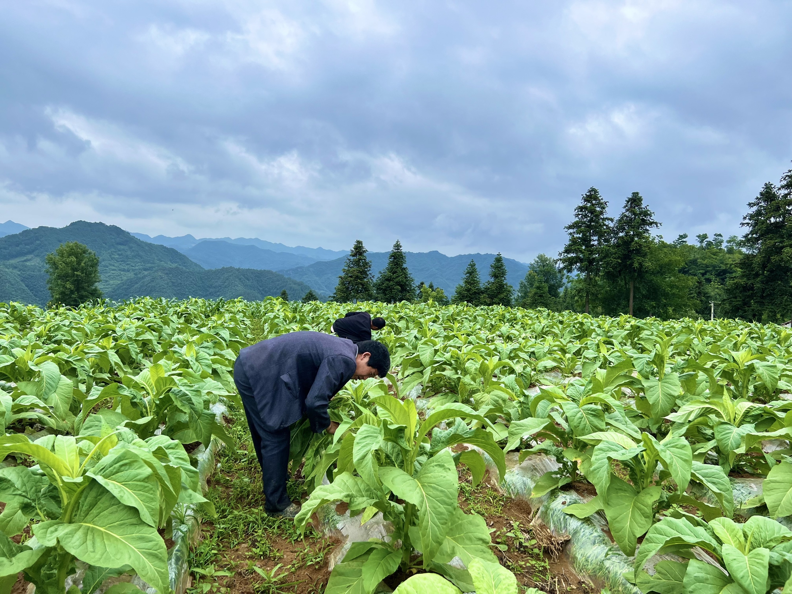 进入大田管护期的以苏块村烤烟种植基地,成片烤烟舒枝展叶,长势旺盛,技术人员和村民正在田间地头除草施肥。