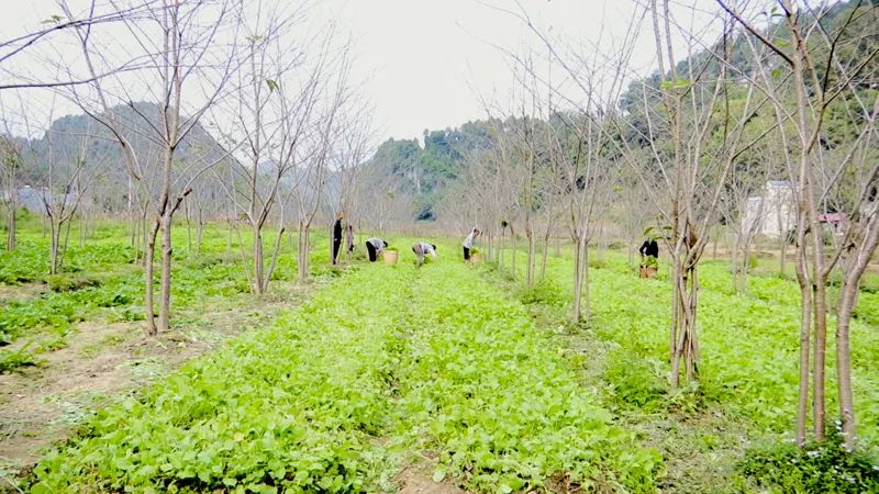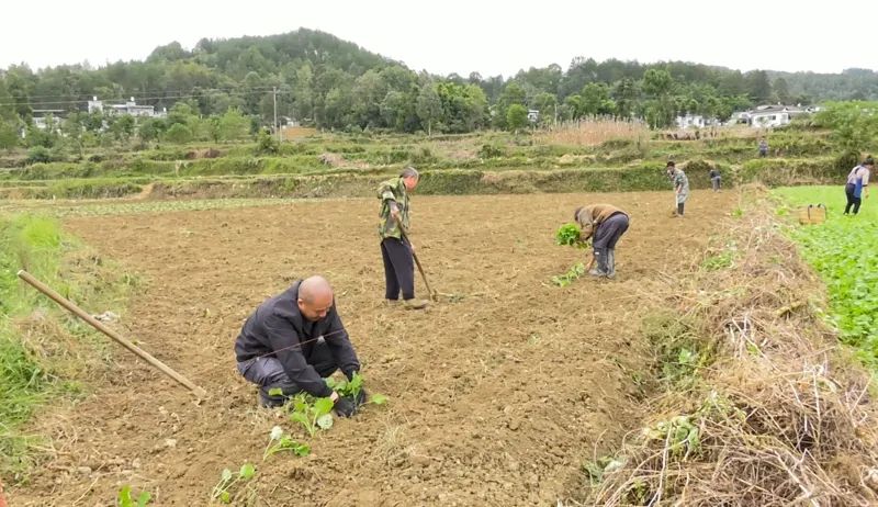 在凤岭街道两河口村,村民们分工协作,有的在油菜集中育苗基地挑选油菜苗,有的在翻整土地、开沟、栽苗等。