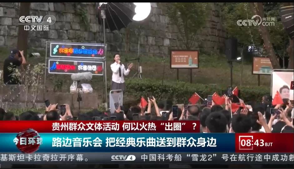 11月12日至13日,央视《晚间新闻》《今日环球》两档栏目又又又接连刊播节目《贵州群众文体活动 何以火热“出圈”?》。其中,报道贵阳路边音乐会·文昌阁让市民和游客享受到全民共享的文化盛宴,受到大家的热烈追捧,演出人气十足。