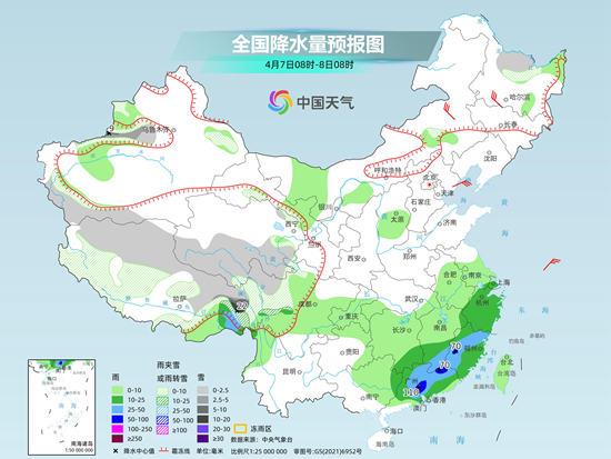 具体来看,中央气象台预计,今天,黑龙江西北部、新疆伊犁河谷和南疆盆地高海拔地区、西藏大部、青海中南部、川西高原北部等地部分地区有小到中雪或雨夹雪,其中,新疆伊犁河谷高海拔地区、西藏东部等地部分地区有大到暴雪,局地大暴雪。西藏东南部、上海大部、浙江大部、江西东北部和中南部、湖南南部、福建大部、广西东部、广东中北部、台湾岛等地部分地区有中到大雨,其中,江西南部、福建西部、广东中部和东北部等地部分地区有暴雨,局地大暴雨。