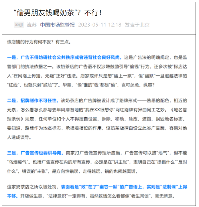 市场监管报解读:该广告有三点不妥