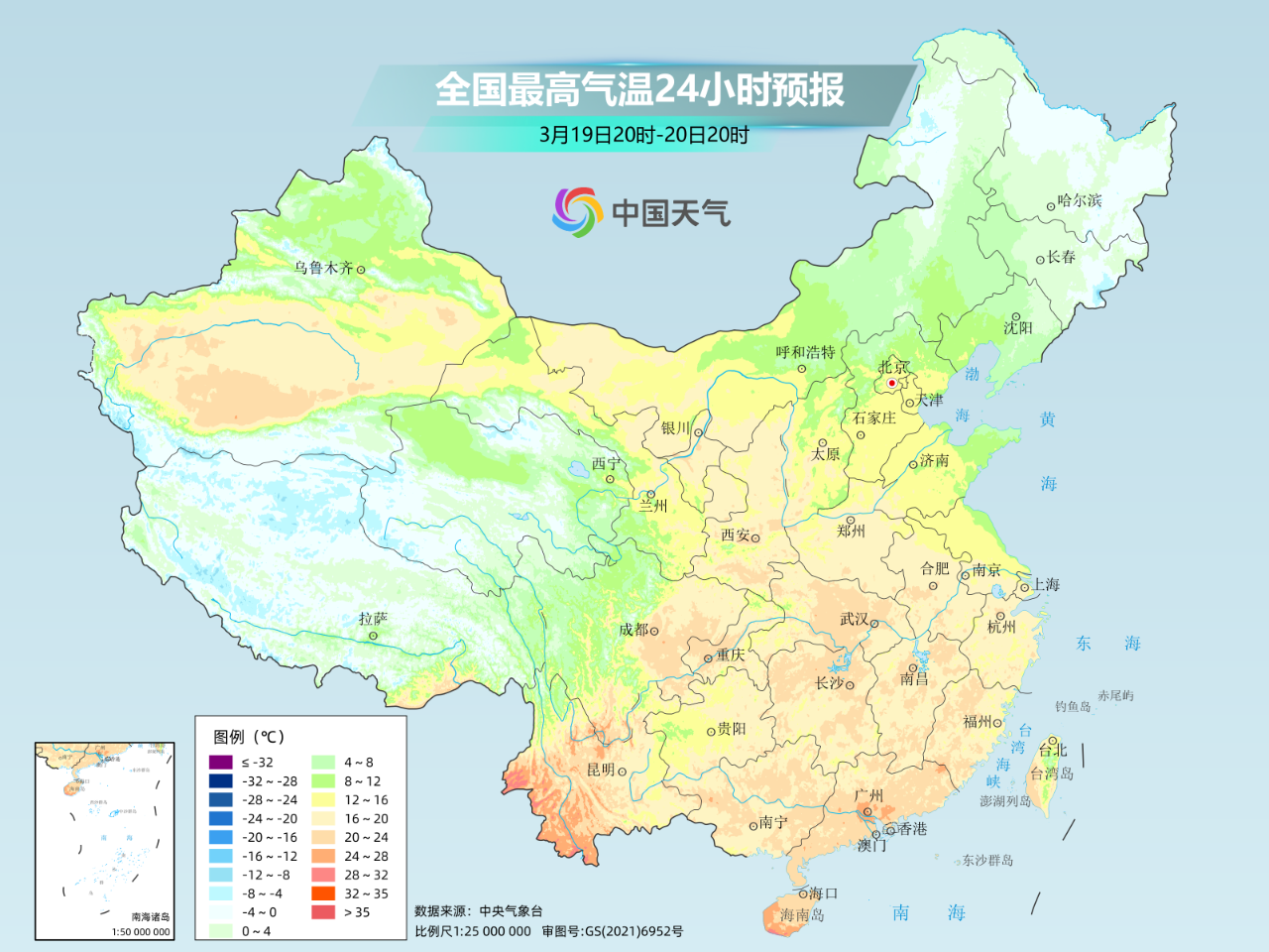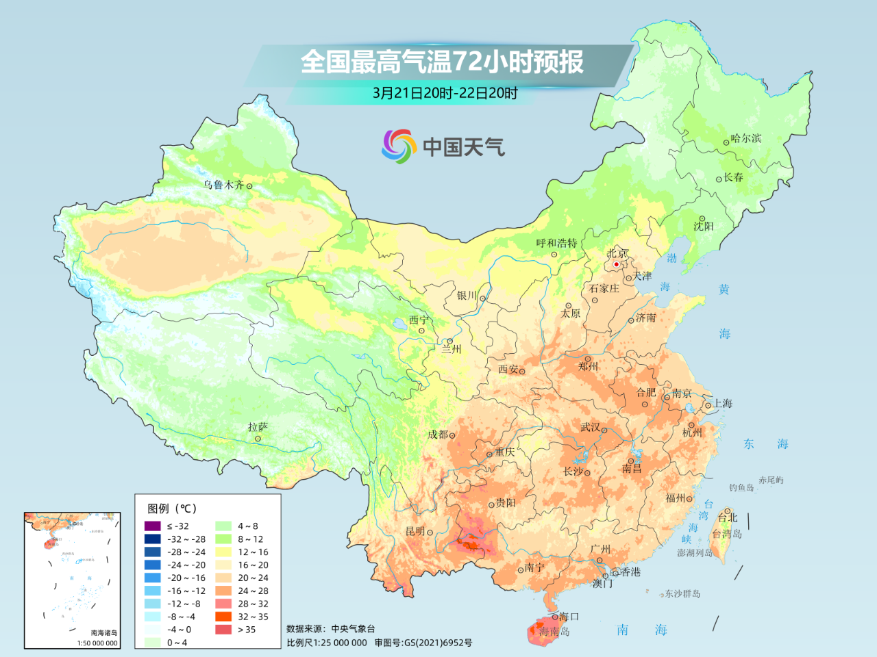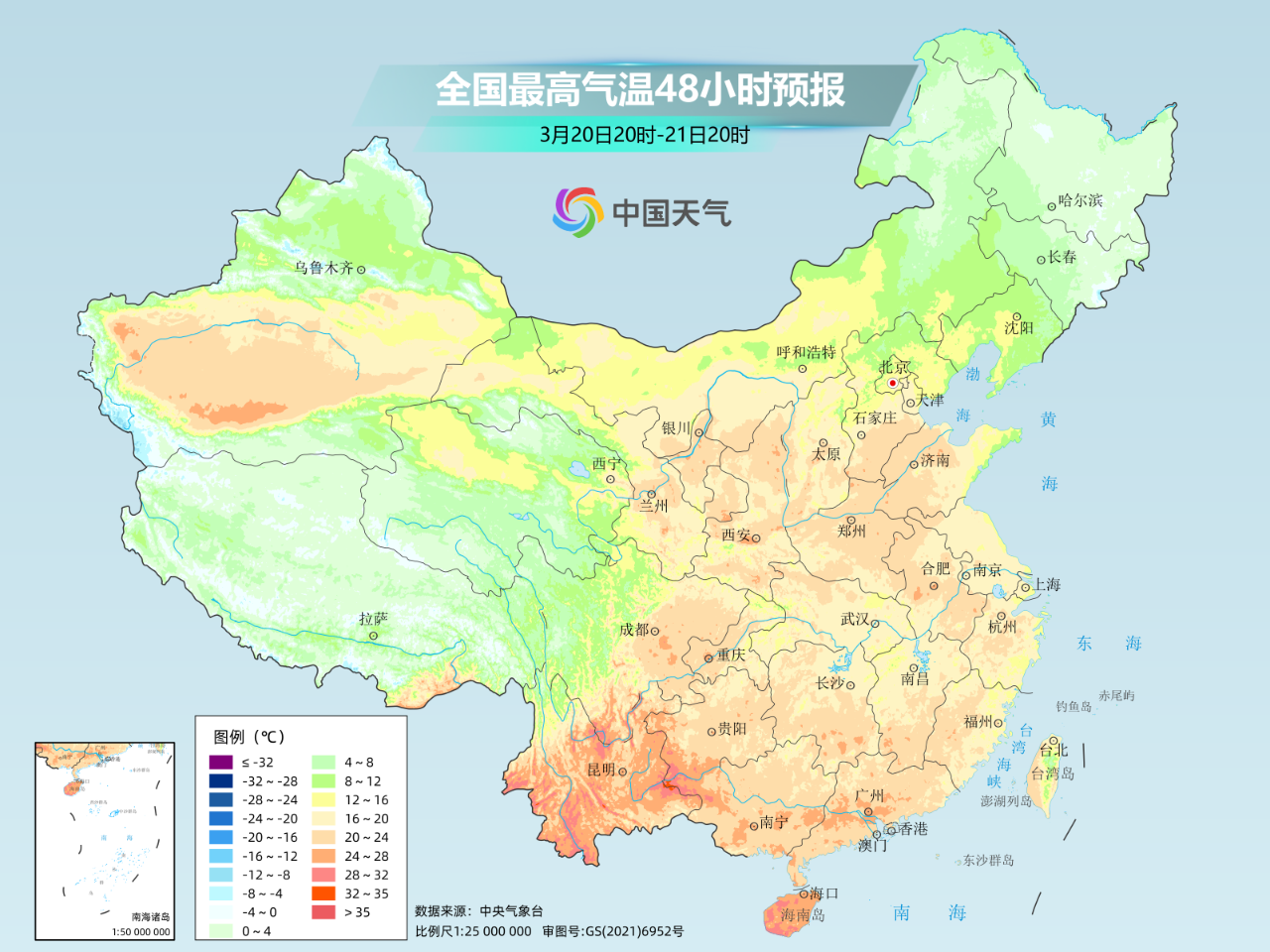 明天开始,中东部大部地区都将加入升温行列,最高气温20℃线将自长江中下游一带稳步北推至华北中部,偏暖的劲头势不可当。未来5天,江淮及其以南大部地区的暖热还会再上一个台阶,预计本周末到下周初,贵州、广西、江西、福建、浙江等地部分地区气温或超30℃,提前拿到“初夏体验卡”。