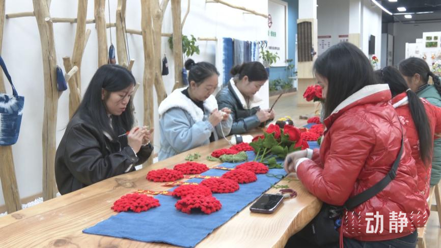 黔东南州天柱县联山街道巾帼创业就业孵化基地,组织当地妇女成立手工编织队,凭借一根针、一团线,做火“居家经济”。