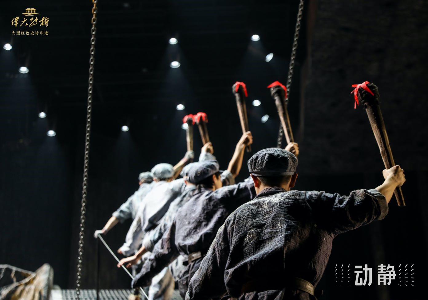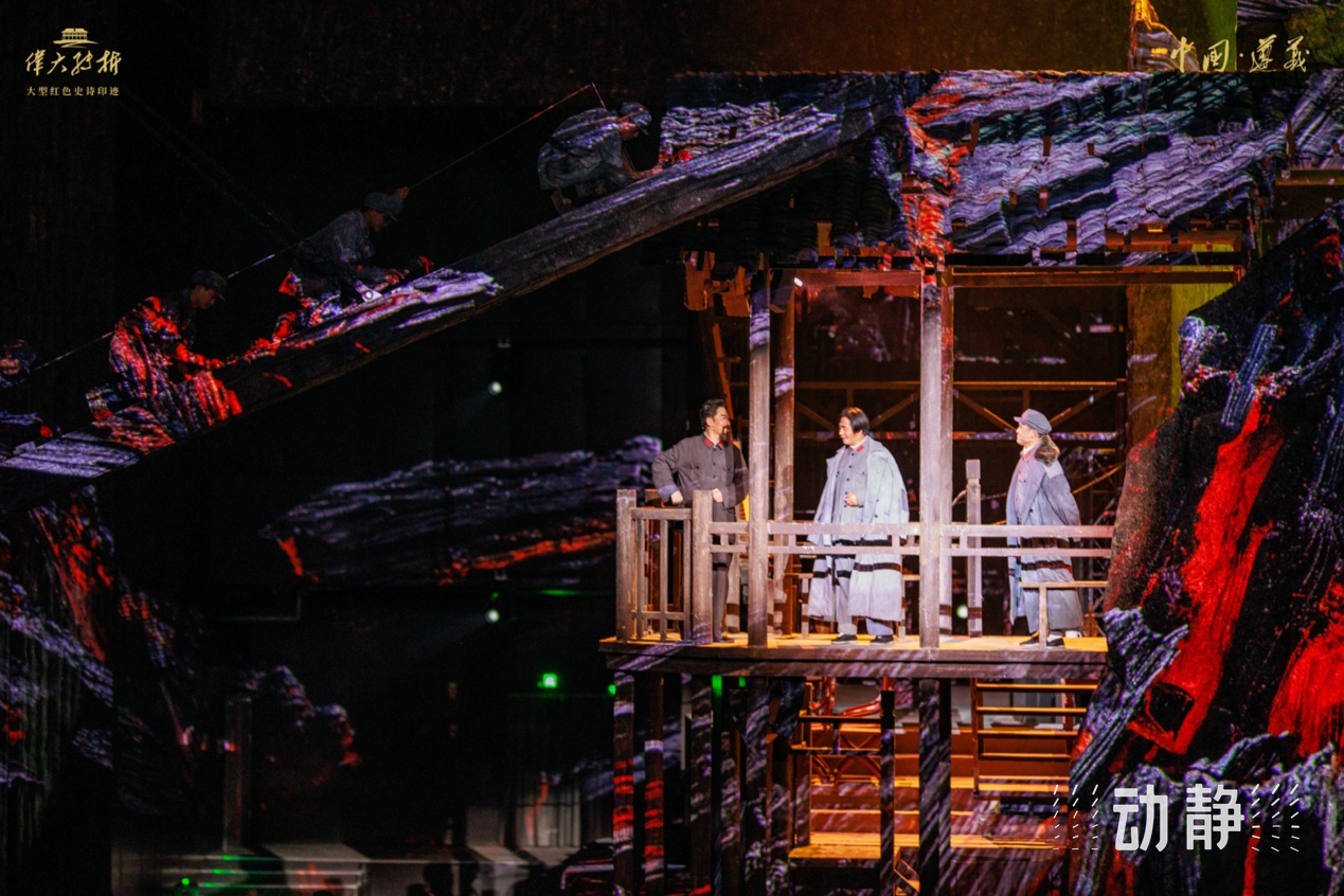 据了解,《伟大转折》剧场可容纳800余名观众同时观看演出。剧目用前沿、创新的艺术手法,巧妙地运用现代舞台创意和新科技手段,通过技术加持内容 ,打造了一个可实现360°自由旋转、震撼“环幕”、真实水景、8D音效环绕的舞台,将“人、声、光、水、电、影、景”完美融合,让更多的观众能够沉浸在剧中,与历史“对话”。与此同时,通过戏剧、影像、装置艺术、机械动作、音乐与舞蹈相互渗透,创造出既神秘又震撼的“围”与“动”的舞美置景,随着剧情的跌宕起伏,让观众仿佛身临其境。