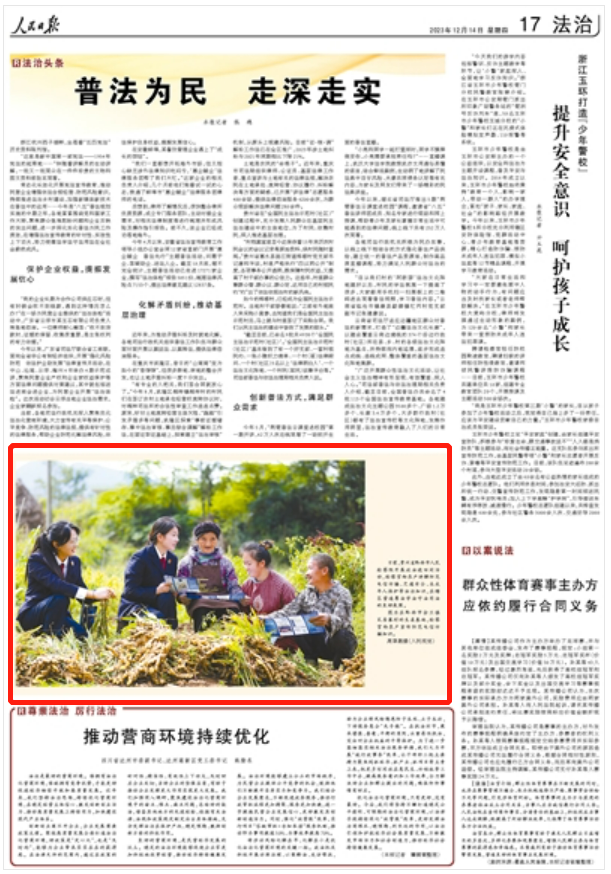 今天(12月14日),《人民日报》刊发图片新闻,报道了贵州省黔西市人民检察院开展送法进田间活动。