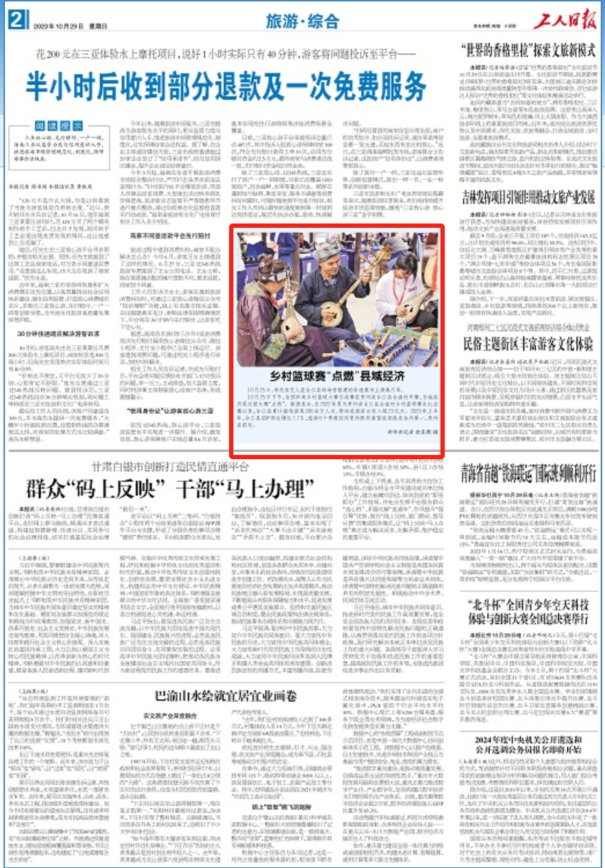 今天(10月29日),《工人日报》刊发新闻《乡村篮球赛“点燃”县域经济》。